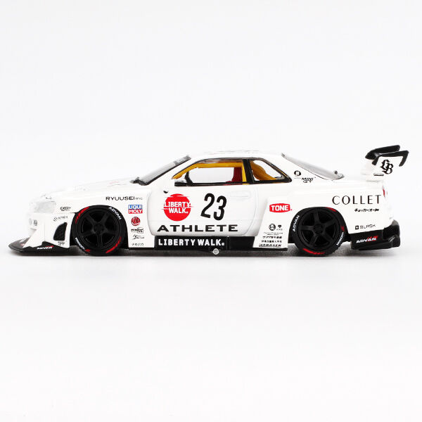 Elevate your diecast collection with this exquisite Mini GT 1:64 Nissan LB-ER34 Super Silhouette. Featuring the iconic ATHLETE/COLLET livery, this meticulously crafted model captures every detail of the legendary Japanese racing machine.