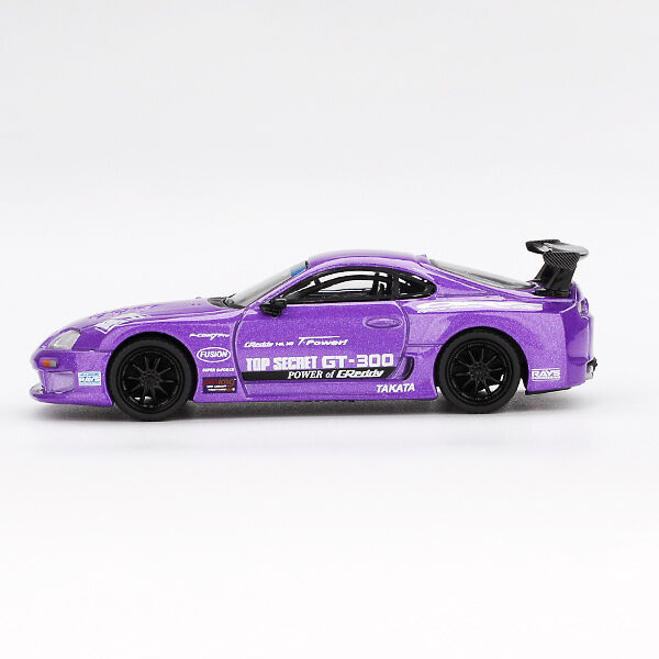 Experience the thrill of racing with the Mini GT 1:64 Toyota Supra (A80) Top Secret GT-300 in striking Top Secret Purple.