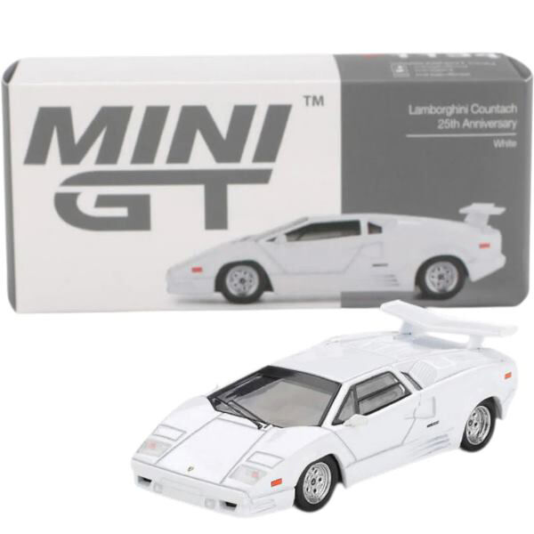 This meticulously crafted diecast model captures the iconic Lamborghini Countach in its celebrated 25th Anniversary white livery. This 1/64 scale replica showcases exceptional attention to detail with accurate proportions, authentic badging, and a refined finish that appeals to serious collectors. The Countach's legendary wedge shaped silhouette is faithfully reproduced, making this a standout addition to any automotive collection. Ideal for enthusiasts who appreciate precision engineering and automotive heritage in miniature form.