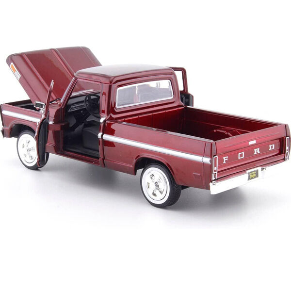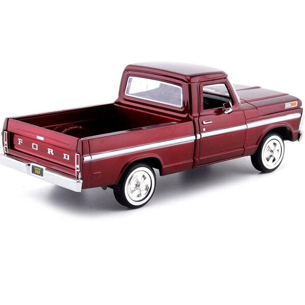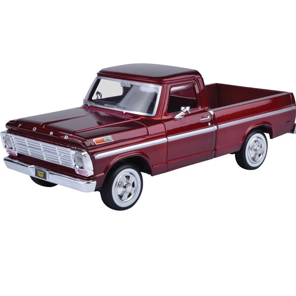 Ford truck fans have gone crazy over our 1969 F-100 replica. To meet collector demand, we've added an all new colour from Ford's 1969 colour palette. This precision 1/24 scale diecast has got it where it counts…just like Ford's best selling F-Series pickups. It features the original's bold 7 bar chrome grille, opening hood and doors and embossed FORD lettering on the tailgate. If you're a Ford fanatic, this Fifth Generation F-Series pickup is a must for your diecast collection.