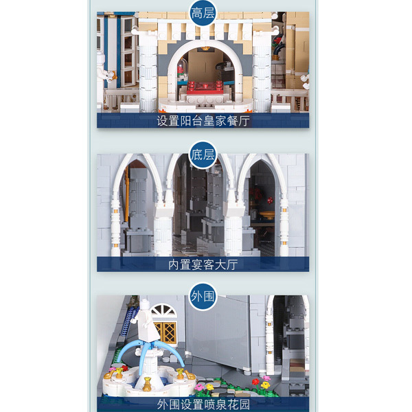 • Realistic and colourful castle details include: European Castle Gate, double-decker fountain, dressing room in the Presidential Suite, soldiers and statues in the castle hall, kitchen and tableware, etc.