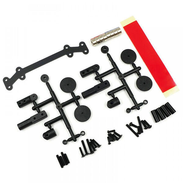 Package includes the parts needed to convert one drift car chassis to a magnetic body mount system.