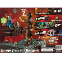 The Escape From the Dungeon glue together model kit is the first release in the haunted Manor series of kits from Polar Lights that re introduces fun, spooky models from years past. The kit features fine details on every part. It uses rubber band action to pring two moving figures. In Escape From the Dungeon, is the executioner offering a near miss or a favour that will free our diminuitive friend? In either case, another long dead ghoul has something to say about it! The model base is 8 3/4 wide and 7 long. The plastic model even glows in the dark (if left unpainted).