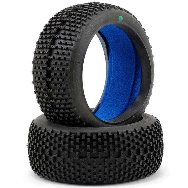 This is a pair of Pro-Line Bow Tie 1/8th scale off road buggy tyres in super sticky M3 compound. The 1:8 Bow Tie stems from years and years of research and development from its 1:10 scale and monster truck counterparts. The Bow Tie's design provides unsurpassed forward bite due to the horizontal, straight edge styling. Another unique feature of the Bow Tie is the tapered outer pin design. This tapered effect resists ruts in corners ensuring for greater cornering consistency.