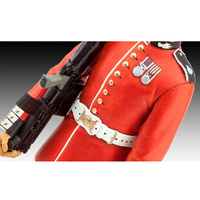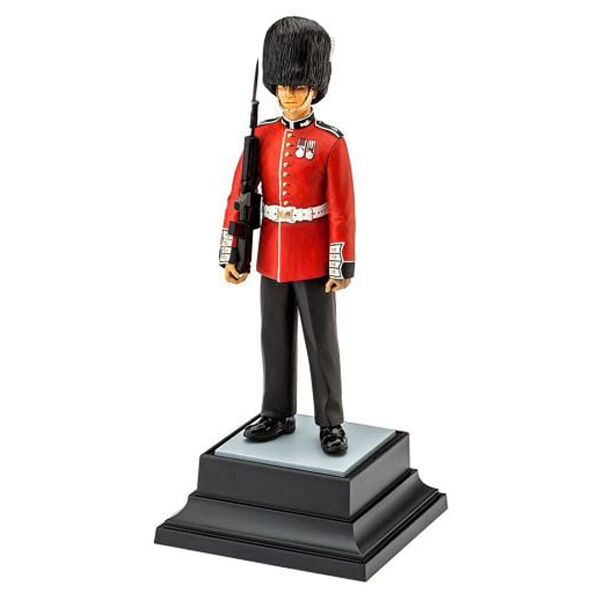 This is a 1/16 scale kit of the world famous Queens. The Queen's Guard are the elite soldiers of the British military in charge of guarding Buckingham Palace, the home of the British Queen. The kit contains 30 parts and the finished model is 124 mm tall.