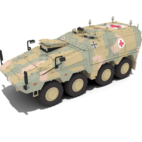 The GTK Boxer was developed as a cooperation project between Germany and the Netherlands. Its unique modular structure allows for various variants of use - from troop transporters to ambulances. The heavy protected ambulance (sgSANKfz) plays a decisive role in medical care in action. Since 2011, the Boxer has proven itself in various international missions and is considered one of the best-protected vehicles in its class.