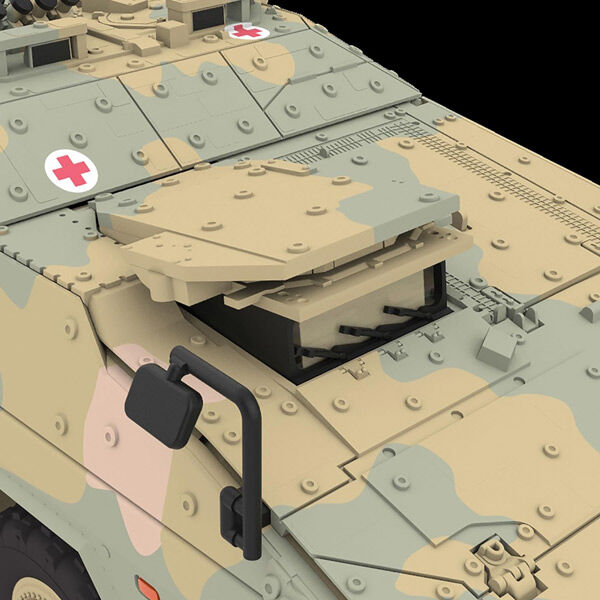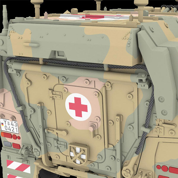 The model impresses with its authentic detailing and allows you to build a replica of one of the most modern medical vehicles in the German Armed Forces. The modular design of the original has been precisely implemented and offers exciting insights into the innovative technology of the vehicle.