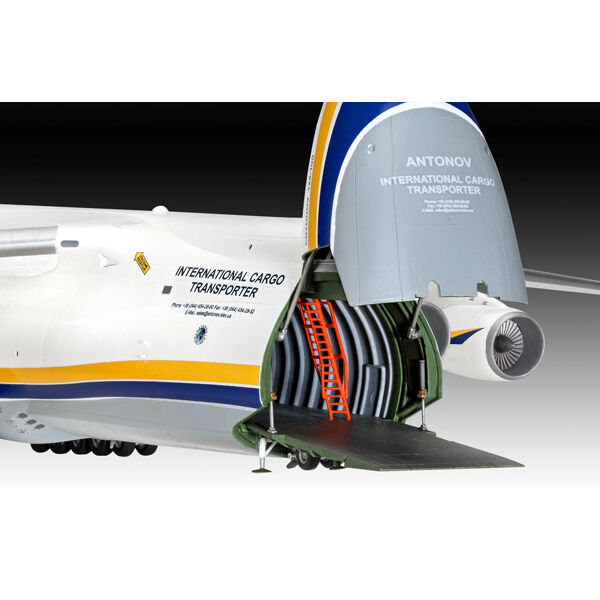 Our Antonov An-124 Ruslan model kit impresses with a variety of special features that make your model building experience unforgettable. The detailed surface with sunk sheet metal bumps gives your model a realistic appearance. Precise reproduced cockpit details and engines provide additional authenticity. The separate wing position lights, antennas and storage tubes complete the model and make it a real eye catcher. This model is suitable for both beginners and advanced model builders.