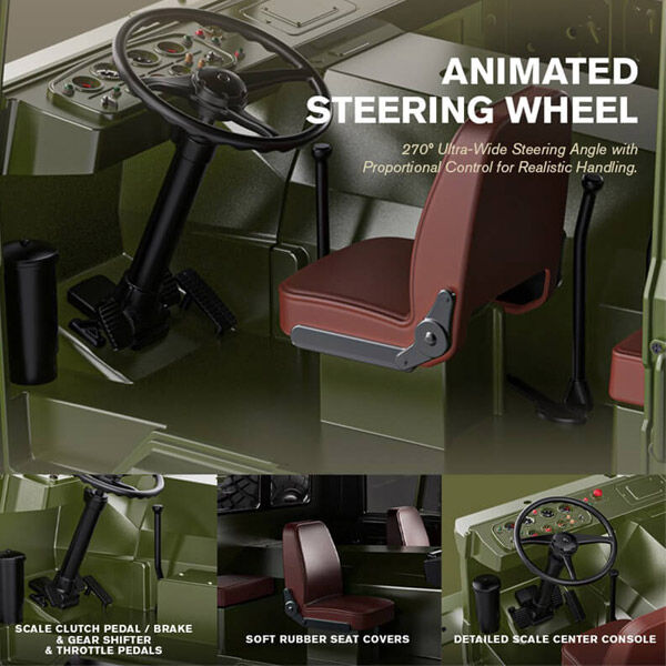 The suspension system uses a traditional leaf spring layout, faithfully replicating the load bearing characteristics of the full size vehicle. For users seeking increased articulation, the platform also supports oil filled shock upgrades without modification.