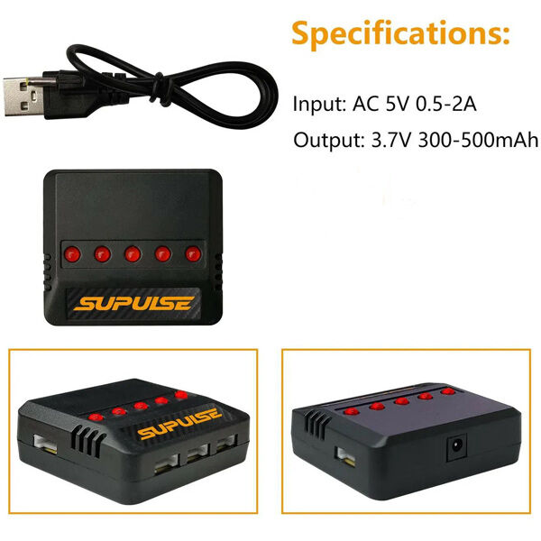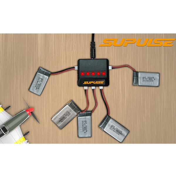 The Volantex Supulse 5 in 1 USB 1S 3.7V Micro 5-Port LiPo Charger offers a simple way to keep multiple 1S packs ready to go. Designed for 3.7V 1S LiPo batteries, its five port layout allows you to charge several batteries at the same time, helping to streamline your charging routine.