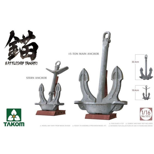 Launched at Kure, Japan in 1940, Yamato weighed over 70,000 tons, and needed a serious anchor to hold her steady in rough seas. She required an anchor so serious, that she required two anchors; the 15-ton main anchor was over 5 meters in length and was mounted in the bow, while a smaller 3-meter anchor was mounted at the stern. This anchor arrangement helped keep Yamato steady.