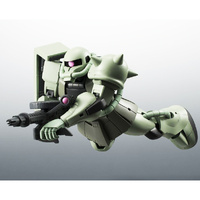 The legendary mass produced Zaku, the Zeon mainstay of the One Year War, returns to Bandai's ‘The Robot Spirits ver. A.N.I.M.E.’ action figure series! With phenomenal posability and a wealth of armaments, you'll be able to recreate all your favourite scenes from the show! Its appearance in the anime has been verified from not only broadcast footage, but also the product design at the time; the front armour base itself is movable, greatly expanding the range of motion of its legs and abdomen. A switch to open and close the hatch is included, and the monoeye on its head can be moved left and right too. The Magella top cannon is included, and the missiles can be attached and detached from the triple missile pods on the legs; a missile effect that shows it in firing mode is included. The cracker can be held in the hand, and it can also be mounted to the waist; a special head part for the captain's machine is included, so you can modify it as you choose.
