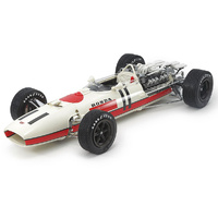 Honda started appearing in Formula One races in 1964, and in that August's German Grand Prix they debuted their RA271, which had its 1.5-liter 60-degree V12 engine in a novel transverse layout. The following year - the last for 1.5-liter cars - it was succeeded by the RA272, which in Richie Ginther's hands memorably took Honda's maiden victory at the pinnacle of motorsport, before it too was superseded in the Italian GP in 1966 by the RA273 with its 3-liter engine. Featuring a lightweight monocoque frame with aluminum panels and powered by a 90-degree V12 engine, the RA273 was driven by Ginther and Ronnie Bucknum, before the legendary John Surtees took over for the first six races of 1967, earning a podium finish at the South African GP that opened the season.