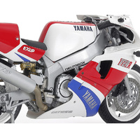 The Yamaha FZR750R was a street-legal version of the dominant YZF750 race bike. It was fitted with a 4-stroke DOHC 4-cylinder 5-valve engine with titanium conrods and enlarged exhaust ports, and featured an aluminum Deltabox frame and race-spec suspension unit. High quality FRP fairings were a perfect match for the FZR750R's top notch performance, and the 1,000 made were soon snapped up by motorcycle afficionados.
