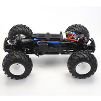The Squash Van represents a fresh and enjoyable large-tire vehicle that draws inspiration from 1950s American panel vans. Its polycarbonate body shell is perched atop the recently introduced gear-driven 4WD GF-02 chassis, a modified version of the comical GF-01. While the GF-01 chassis showcases a design, the GF-02 chassis takes a more realistic approach with its wheelbase and a frame adorned with ladder and pipe elements.