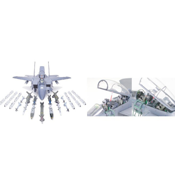 The popular F-15E Strike Eagle (item 60302) was released in 1993. However, since this item's release, the F-15E has come to be equipped with a variety of newly developed weapons systems. Following the changes in times and aviation fighting technology Tamiya has modernised its kit to feature accurate replicas of all the latest weapons systems employed by the F-15E Strike Eagle. Includes parts for replication of the GBU-28 "Bunker Buster", as well as AGM-130 and JDAM guided bombs, and ARAAM air-to-air missiles