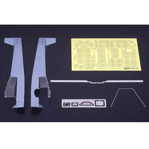 A choice of 3 kinds of canopies, belly tanks, and skis for winter. From the many extra parts provided, you are able to build a Fieseler Fi156C to your own liking.