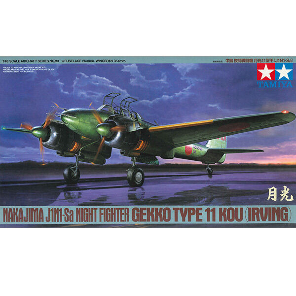 Originally designed as a long range fighter, the three seat twin engine Nakajima J1N1 was designated as a reconnaissance aircraft after failing testing. Following being successfully used as a night fighter against US bombers, official production began in 1943 on a night fighter version, the J1N1-S Gekko (moonlight). Modifications included removing third seat, adding twin mounted 20mm guns behind cockpit canopy angled up at 30 degrees and underneath fuselage angled down at 30 degrees. The Gekko proved successful against B-17 and B-24 bombers, and continued to fight until the end of WWII. The later version, the J1N1-Sa, featured singular exhaust stacks and three 20mm cannons mounted in upper fuselage with lower guns removed. Some later Gekko models also featured an antenna and radar system mounted on the nose.