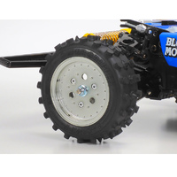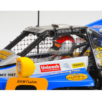 The Hotshot II debuted in 1987, a follow up to the Hotshot, our wildly popular first-ever shaft driven 4WD buggy. Now, the Hotshot II makes a re-appearance with various tweaks added by the famous Japanese designer Mr. Jun Watanabe. It features an overhauled colour scheme of brilliant blue (body and wing are pre-painted in this colour, and pre-cut), with a prominent white stripe. The driver figure position has also been re-evaluated, while the upper deck and roll cage are new components, bringing the driver up to a more realistic location. Guards and car number plates were also designed by Watanabe, while the motor has a dedicated sticker.