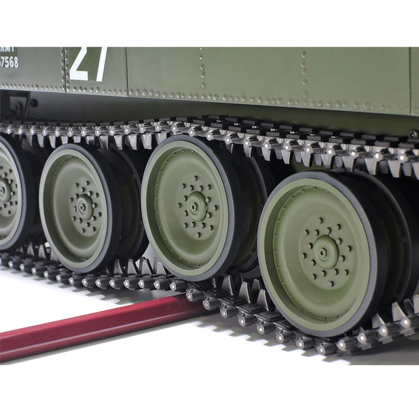 • Offers a full range of movement: forward and reverse, a variety of turns, turret rotation and gun elevation. Suspension features a coil spring for each of the 10 suspension arms, giving the model excellent mobility