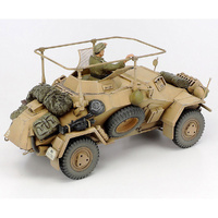 The angular form of the armored car with distinctive frame antenna is captured in style. Turret top mesh is depicted using photoetched parts