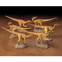 The Velociraptor was a small carnivorous dinosaur which inhabited a large area from Asia to North America during the Late Cretaceous period. This kit enables six Velociraptors to be made and includes various parts to allow each to have a different pose. Each finished model may be mounted on its own individual display base.