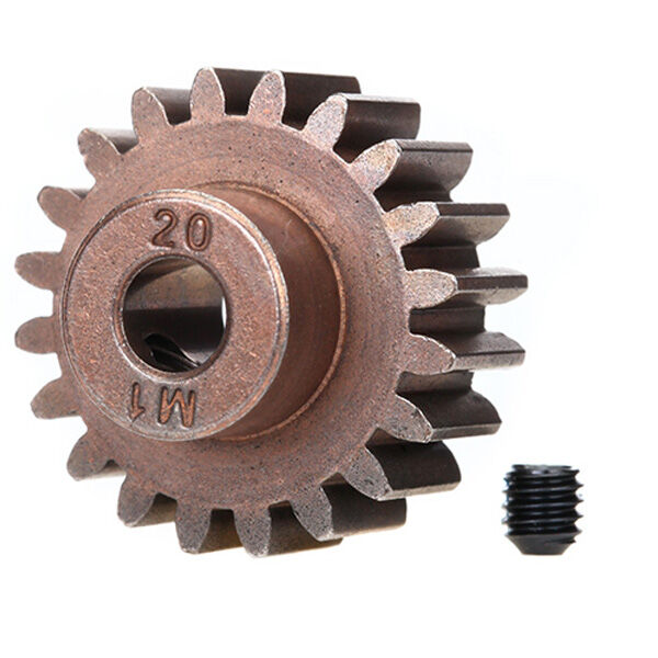 Traxxas 6494X:  20-T Pinion Gear (1.0 metric pitch) (fits 5mm shaft)/ Set Screw (compatible with steel spur gears)