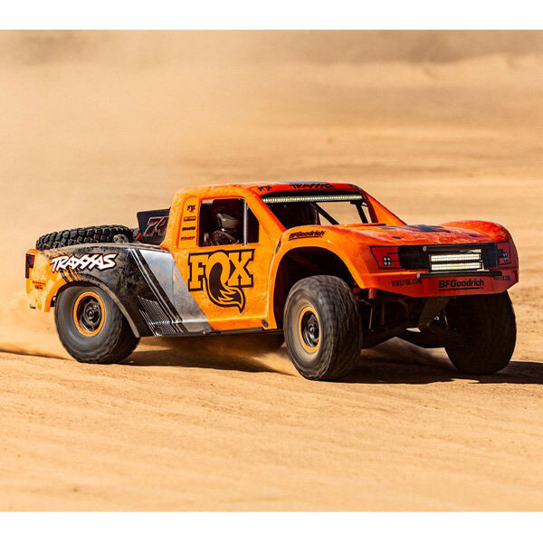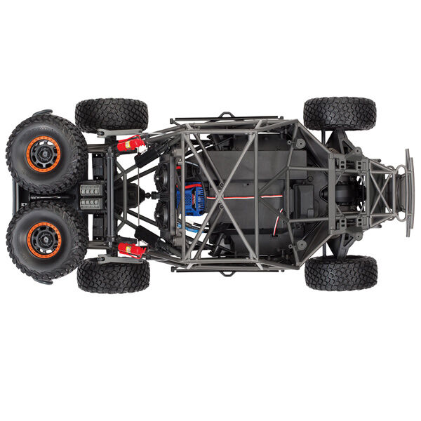 The Unlimited Desert Racer combines Pro Scale performance with extreme 6S power for the most thrilling RC driving experience possible. The UDR drives like a real desert truck because its engineered like a real desert truck. A 4 link solid rear axle provides huge suspension travel with authentic driving dynamics. From the cantilever sway bars and high-voltage lighting system to the GTR shocks, Traxxas accurately reproduced a true desert racer in both form and function.