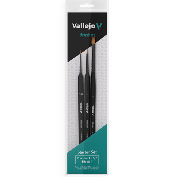 This assortment of three brushes includes two round brushes with triangular handles from the Precision series in sizes no. 3/0 and 1, and one flat brush no. 4 from the Effects series. This versatile selection allows for detailing as well as wash and fade techniques.