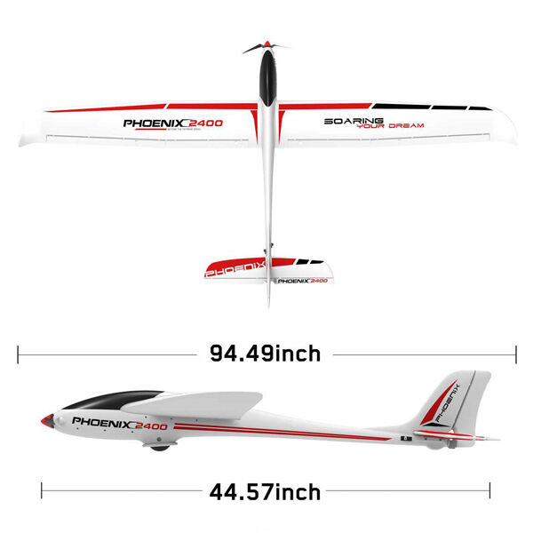 The Phoenix 2400 is the largest glider in the Phoenix range. It comes with an ABS plastic hull and strong EPO foam wings and tail section. An additional canopy with camera mount is included.(camera sold separately)  Once you have your camera installed, you can either enjoy FPV flying or just take pictures of your flights.