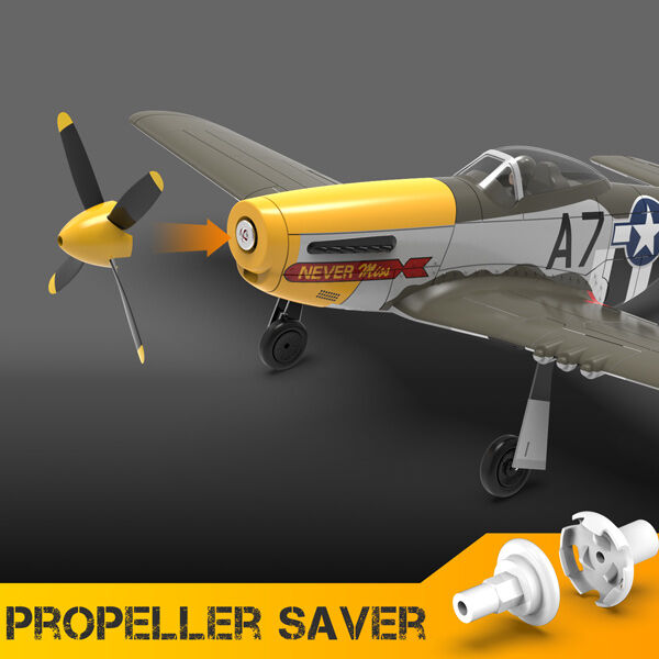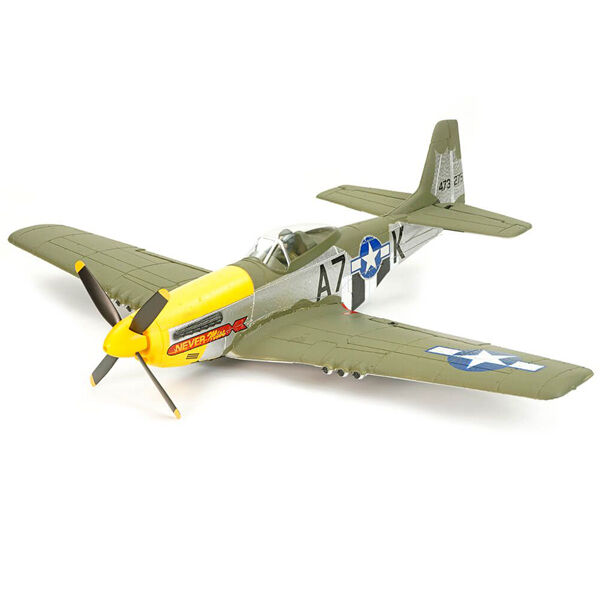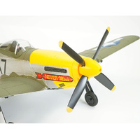 Finished in a striking scale livery of matte green, silver fuselage with invasion stripes, yellow cowl and spinner this P-51D looks the part straight from the box. Additional details such as a 4 bladed propeller, landing gear with doors, clear canopy with pilot and cockpit elevate the model to semi scale status.