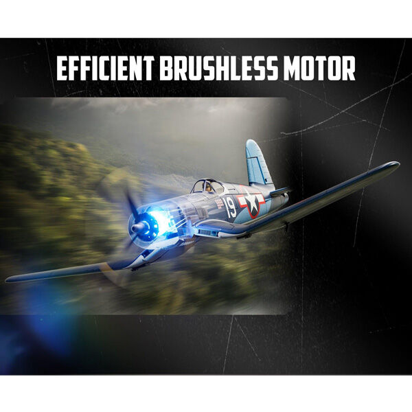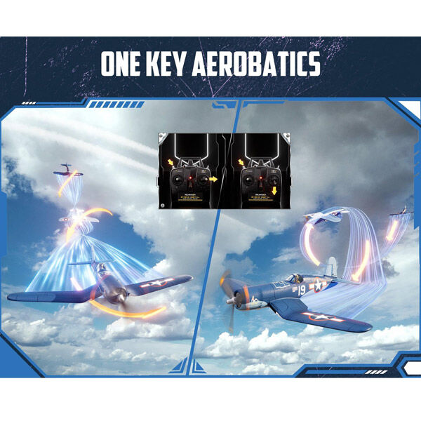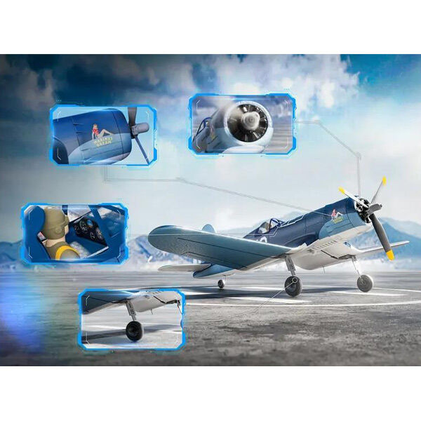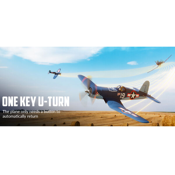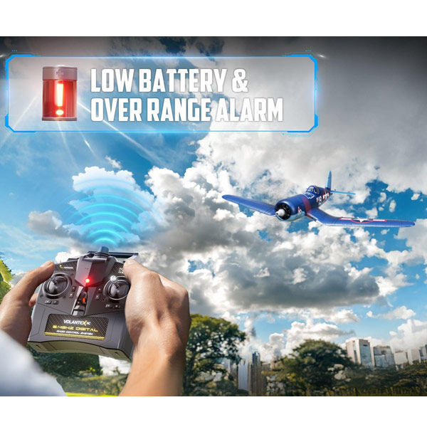 The Volantex RC F4U comes with a 4 channel 2.4 GHz controller. The high frequency provides a stable connection without interference from other radio controlled models. Perfect when you want to fly with friends. The controller uses 4 AA batteries (not included).