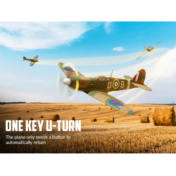 The Volantex RC Spitfire 500mm is a small aircraft with excellent performance. Thanks to the integrated Xpilot gyro stabiliser system and a powerful brushless motor, the aircraft flies stably, agilely, and capable of performing aerobatics. Equipped with an aerobatic function, simply press a button and pull the stick for easy control and acrobatics. A 3 level flight assistant (Beginner with full assistance, Intermediate with partial assistance, and Expert with manual control) helps beginners learn to fly step by step