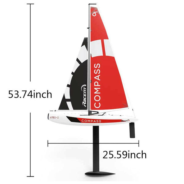 At 65 cm in length , the most popular size for RC sailboats, the Compass 650 provides a perfect balance between stability and agility on the water. The overall height of 102.5 cm , including the keel, makes it both impressive to look at and fun to sail. The wide hull width of 13.5 cm provides excellent balance, while the low weight of 1.3 kg contributes to a responsive and realistic sailing experience