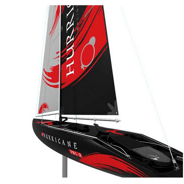 The Hurricane is a sailboat in the popular one metre class, making it an excellent choice for both hobby sailors and those looking to take the leap into competitive sailing. With a length of 990 mm, a mast that extends 2130 mm above the deck and a hull width of 220 mm, it offers a stable and realistic sailing experience. Despite its size, the boat weighs only 1350 grams, making it easy to handle both on and off the water.