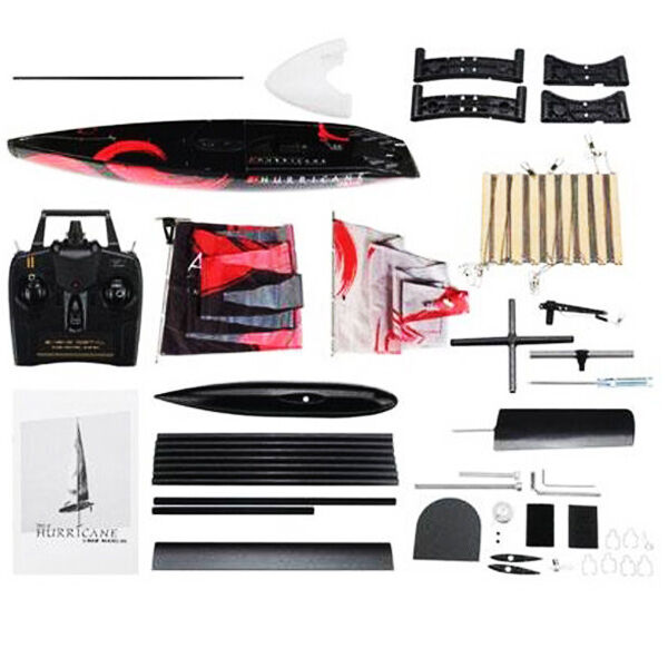 The Volantex RC Hurricane comes with all electronics pre installed. You will need to assemble the mast, sails and keel yourself, and also gives you insight into how the sails can be adjusted later to optimise performance. The package includes tools, screws, manual, boat support and a 2.4 GHz transmitter. After assembly, just insert batteries and hit the water!