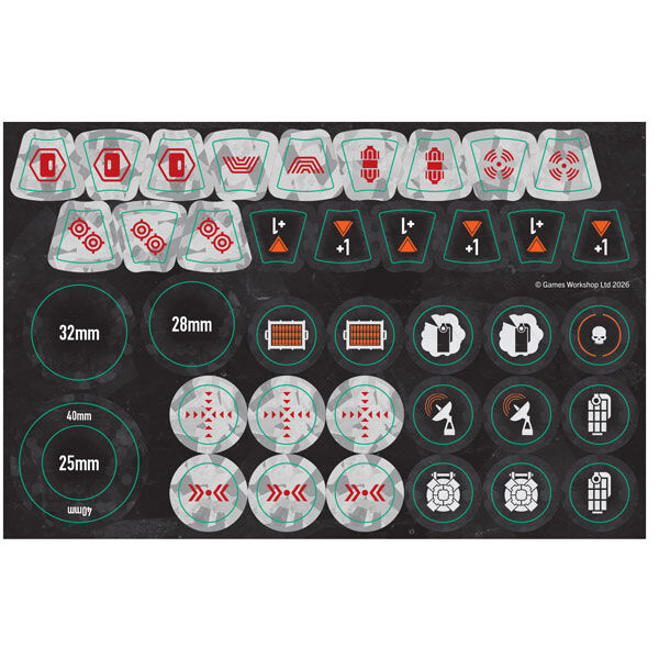 Inside the box, you will also find a sheet of 38 double sided XV26 Stealth Battlesuits tokens, so you can easily keep track of your equipment and in game effects in the heat of battle.