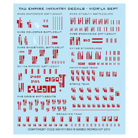 This kit is supplied with 1x T’au Empire Infantry Decals – Vior’la Sept Transfer Sheet, containing 177 high quality waterslide transfers. These include symbols for Stealth Battlesuits and other T’au Empire units, including Pathfinder Teams, XV95 Ghostkeel Battlesuits, and more.