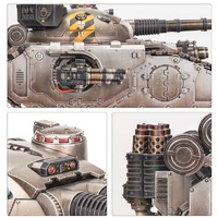 This multipart plastic kit builds a Fellblade Super Heavy Battle Tank, a behemoth of destruction for your Legiones Astartes armies in games of Warhammer: The Horus Heresy. Protected by thick armour plating, it can withstand incredible amounts of damage, soaking up firepower that would tear through lesser tanks. In reply, the turret mounted Fellblade accelerator cannon can eradicate enemy vehicles and troops with ease. Its secondary armament is a hull mounted demolisher cannon – a fearful weapon in its own right. The Fellblade is ideal for dominating the battlefield and providing support to your infantry advance. This model measures an imposing 131mm by 252.5mm, making an impressive centrepiece for your collection.
