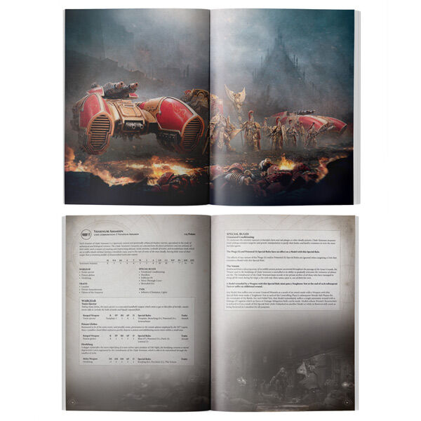 – Army Lists: Guidelines for building armies of Legio Custodes, Anathema Psykana, and Agents of the Divisio Assassinorum, as well as Advanced Reactions and Gambits.