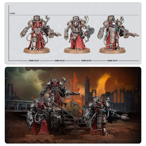 These miniatures have no allegiance specific markings, so you can use them in any Mechanicum force, whether you believe the Emperor to be the true Omnissiah or a false prophet.