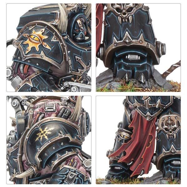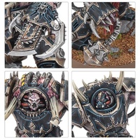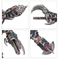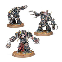 Clad in twisted Terminator armour, they are now mutated beyond recognition with twisted flesh and horns bursting from seams in their once noble plate. Their limbs terminate in wild clusters of horrific fleshmetal weapons, including heavy maces and massive power claws. The weapons themselves are interchangeable across the unit, making it easy to customise your line breaking shock troops.
