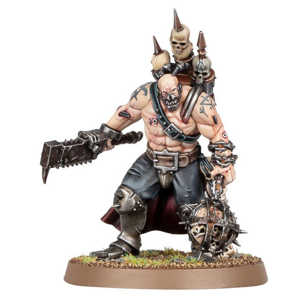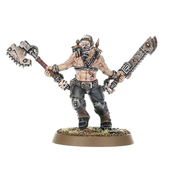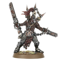 Jakhals are chosen from the strongest, most savage, and bloodthirstiest followers of the World Eaters. Though merely human, these elite cultists seek to emulate the frenzied purity of their gore crazed masters in any way they can, and dive into combat with wild abandon. Each Jakhal goes to battle strapped with a tank of chemical stimms and tainted blood, which drives them into an unstoppable fury of hacking and slashing with their chain weapons as they strive to earn the favour of their bloody lords.