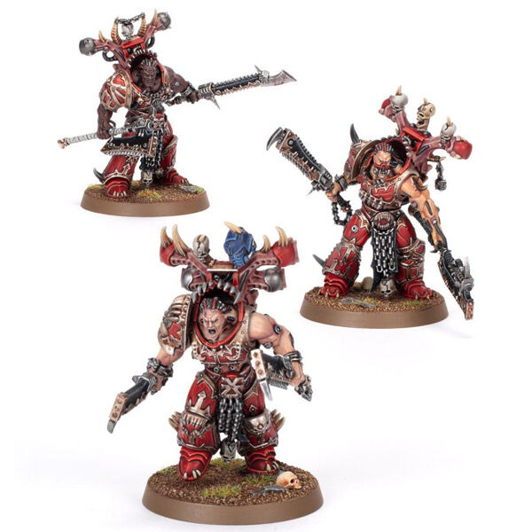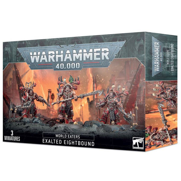 Eightbound are Heretic Astartes possessed by eight separate daemons of Khorne, their swollen forms virtually unrecognisable from the World Eaters they once were. As a result, these warped warriors exhibit unthinkable strength and savagery, far in excess of their mortal brethren. Wielding all manner of enormous chain weapons, a pack of Eightbound are capable of ripping apart almost anything that dares to stand against them.