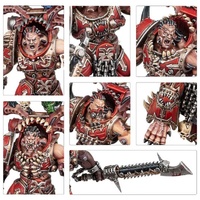 This multipart plastic kit builds three Eightbound – shockingly potent demi daemons fielded by the World Eaters. These monstrous warriors resemble warped, overgrown Khorne Berzerkers, from their exposed muscles and cybernetics to their ornate and twisted armour. Each Eightbound is armed with two eviscerators, massive chain weapons resembling chainswords or chainaxes. You can also build an Eightbound Champion, who can instead be armed with a pair of cleaver like lacerators, or a two handed heavy chainglaive.