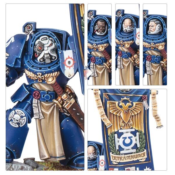 The Ancient in Terminator Armour has four heads to choose from, two different right arms, and his banner has a choice of two toppers.