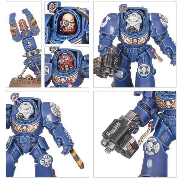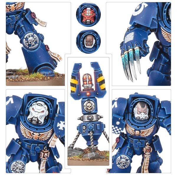 The miniatures in this kit are easy to customise. The versatile Captain in Terminator Armour can be equipped with a power fist or relic sword for getting up close and personal, and a storm bolter or three different varieties of combi weapon – flamer, melta, or plasma – to eliminate the Emperor’s enemies at range. The kit also includes two different bare heads – one with a rebreather and one with a bionic eye – as well as an optional tabard.