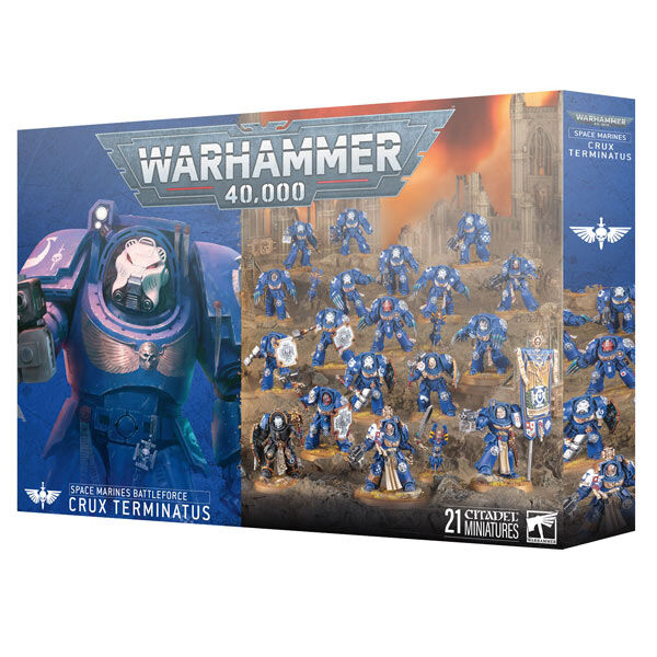 To bear the Crux Terminatus, a Space Marine must have proven their worth in countless battles, mastered every form of warfare, and survived conflicts with every enemy Humanity faces. Once given, these veteran soldiers are granted the honour of wearing fearsome Terminator armour into battle. When deployed in force, there are few foes they cannot best with the combination of nigh impenetrable armour and overwhelming martial prowess.