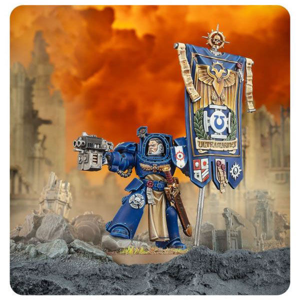 Ancients in Terminator armour are tasked with carrying the sacred banners of the Space Marines – a vital task. Space Marines are happy to die to protect them, symbols of the Chapter’s power. This makes the Ancients attractive targets to the enemy. When clad in their powerful Terminator armor, they are nearly impervious to enemy fire, ensuring that their banner always flies proudly.