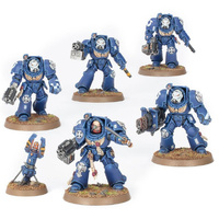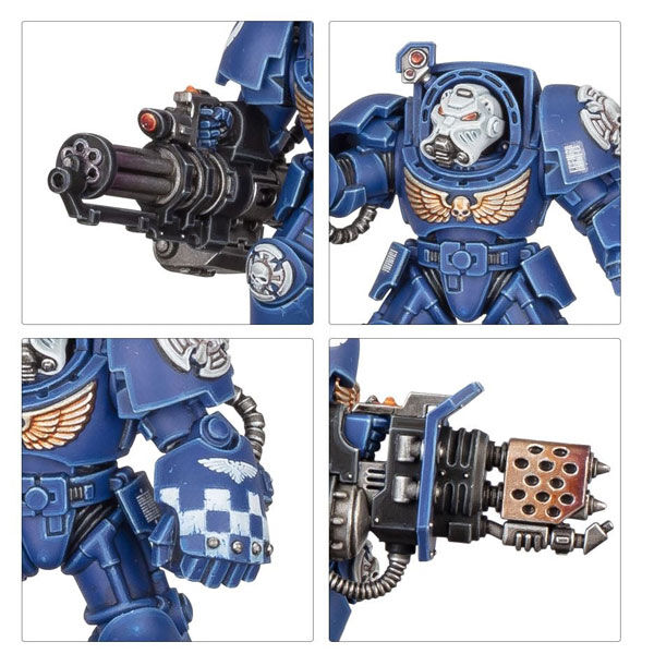 This multipart plastic kit builds five Terminators, hardened Space Marines clad in heavy, nigh impenetrable armour. Each Terminator is armed with a rapid fire storm bolter alongside a crushing power fist or armour-shredding chainfist, and one can instead carry a special weapon – a heavy flamer, an assault cannon, or a back-mounted cyclone missile launcher. You can also build a Terminator Sergeant bedecked in honour markings, with an optional power weapon to replace his fist.